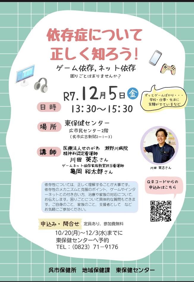 【2025年12月5日開催】「依存症について正しく知ろう!~ゲーム依存・ネット依存~」講演のお知らせ