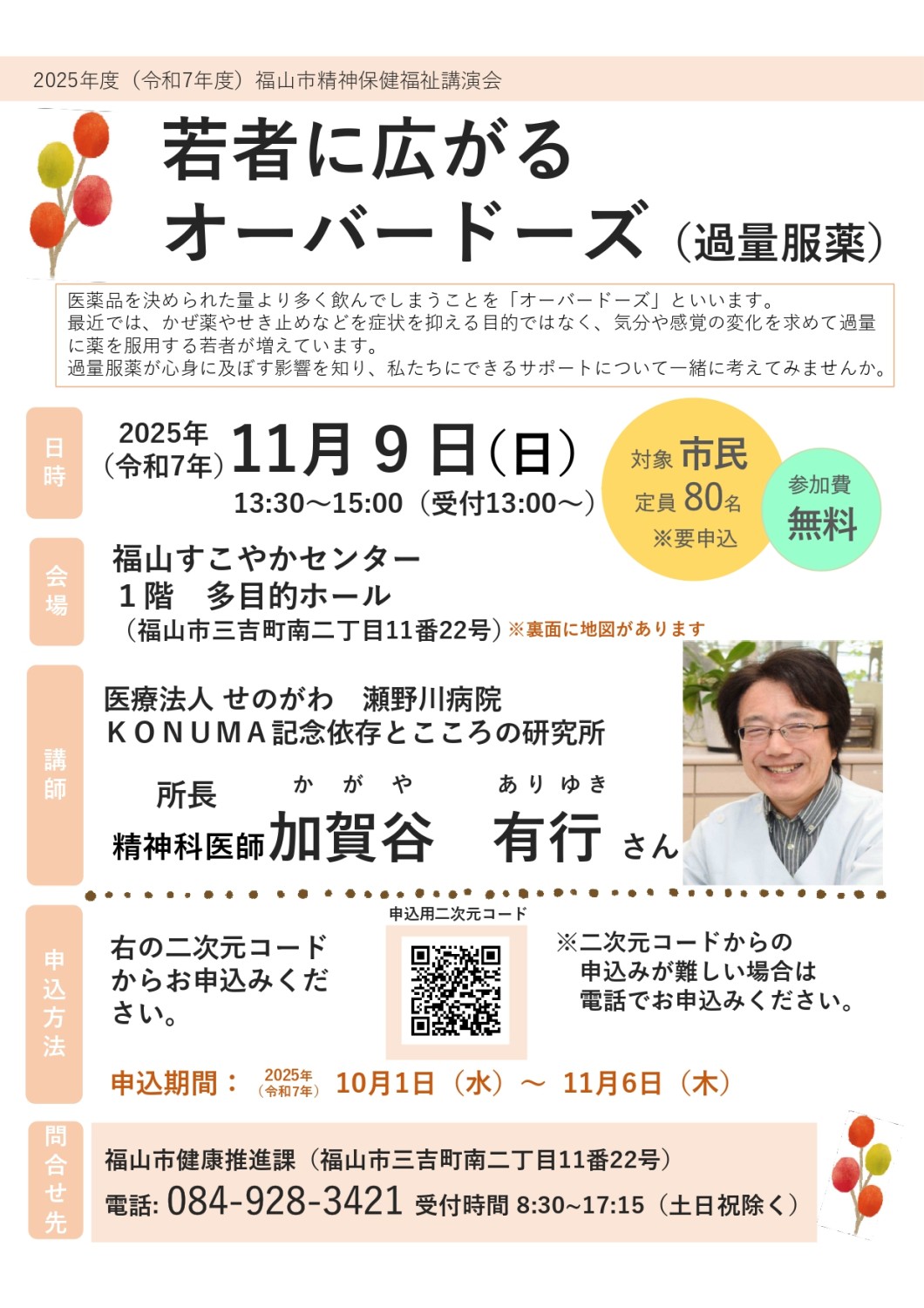 2025年度(令和7年度)福山市精神保健福祉講演会「若者に広がるオーバードーズ(過量服薬)