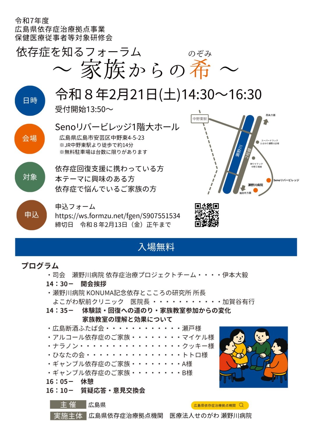 主 催:広島県 実施主体:広島県依存症治療拠点機関 医療法人せのがわ瀬野川病院